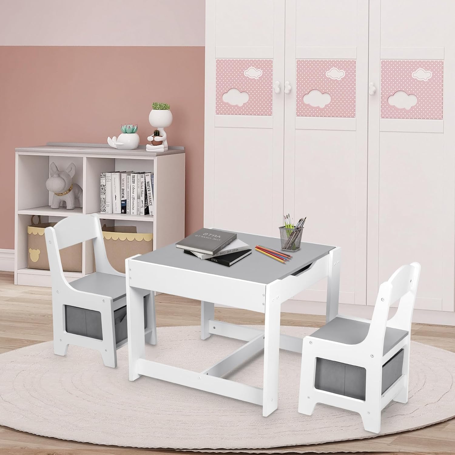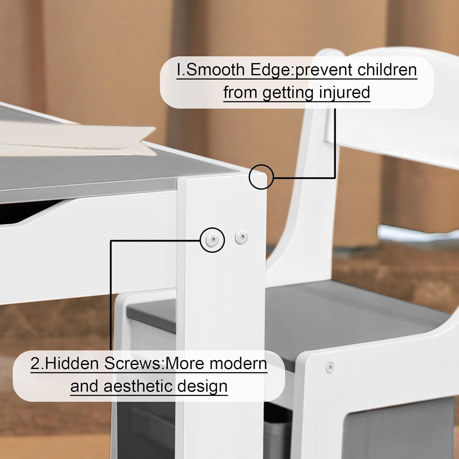 3 in 1 Wooden Kids Table and Chair Set,with Storage Drawer ,2 in 1 Tabletop Storage Space,Crafts,Drawing,Reading,Playroom,Kids Set for Ages 5-8