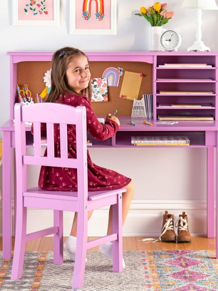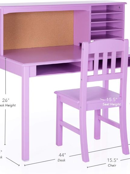 Guidecraft Children’s Media Desk and Chair Set – Lavender: Student’s Study Computer Workstation with Hutch and Shelves, Wooden Kids Bedroom Furniture