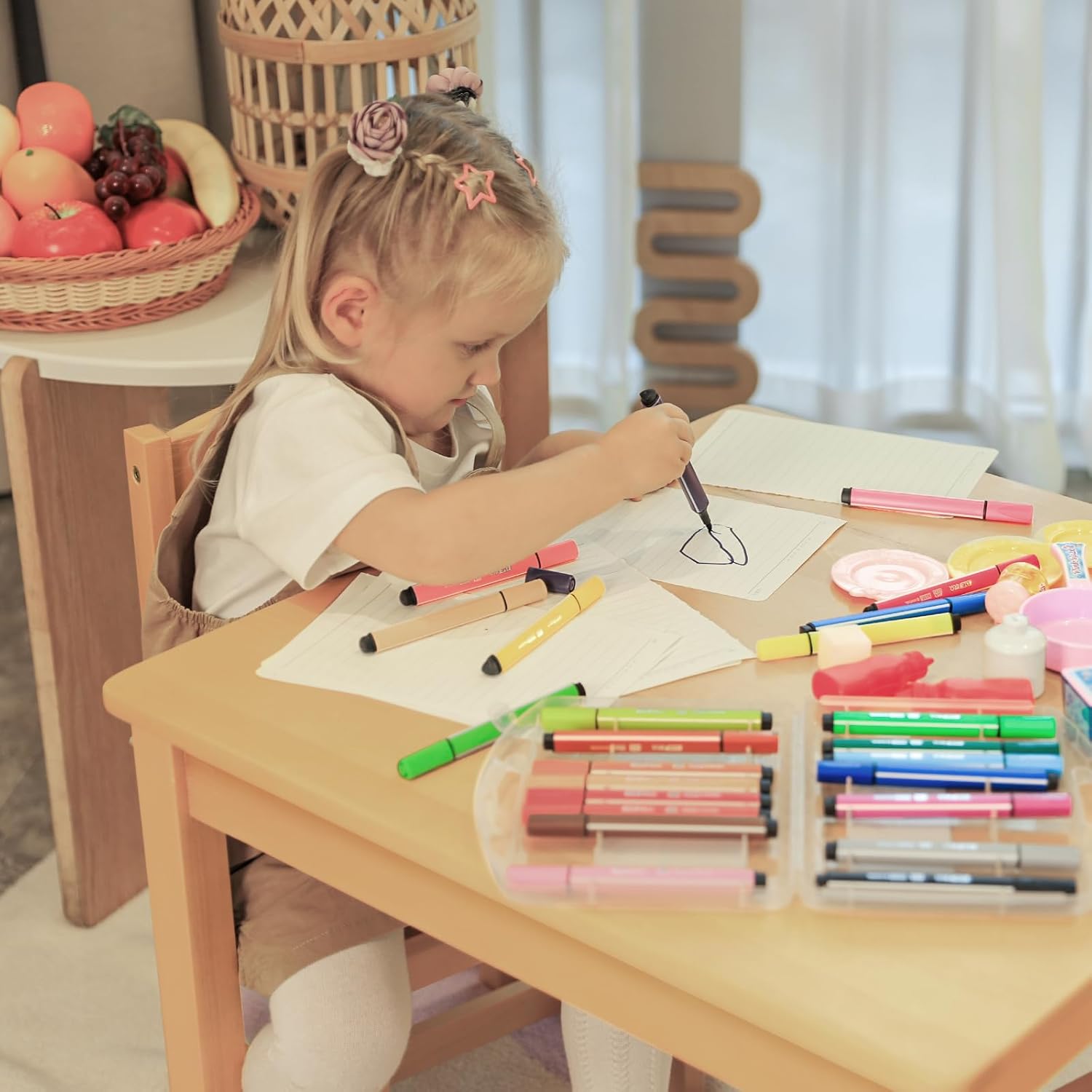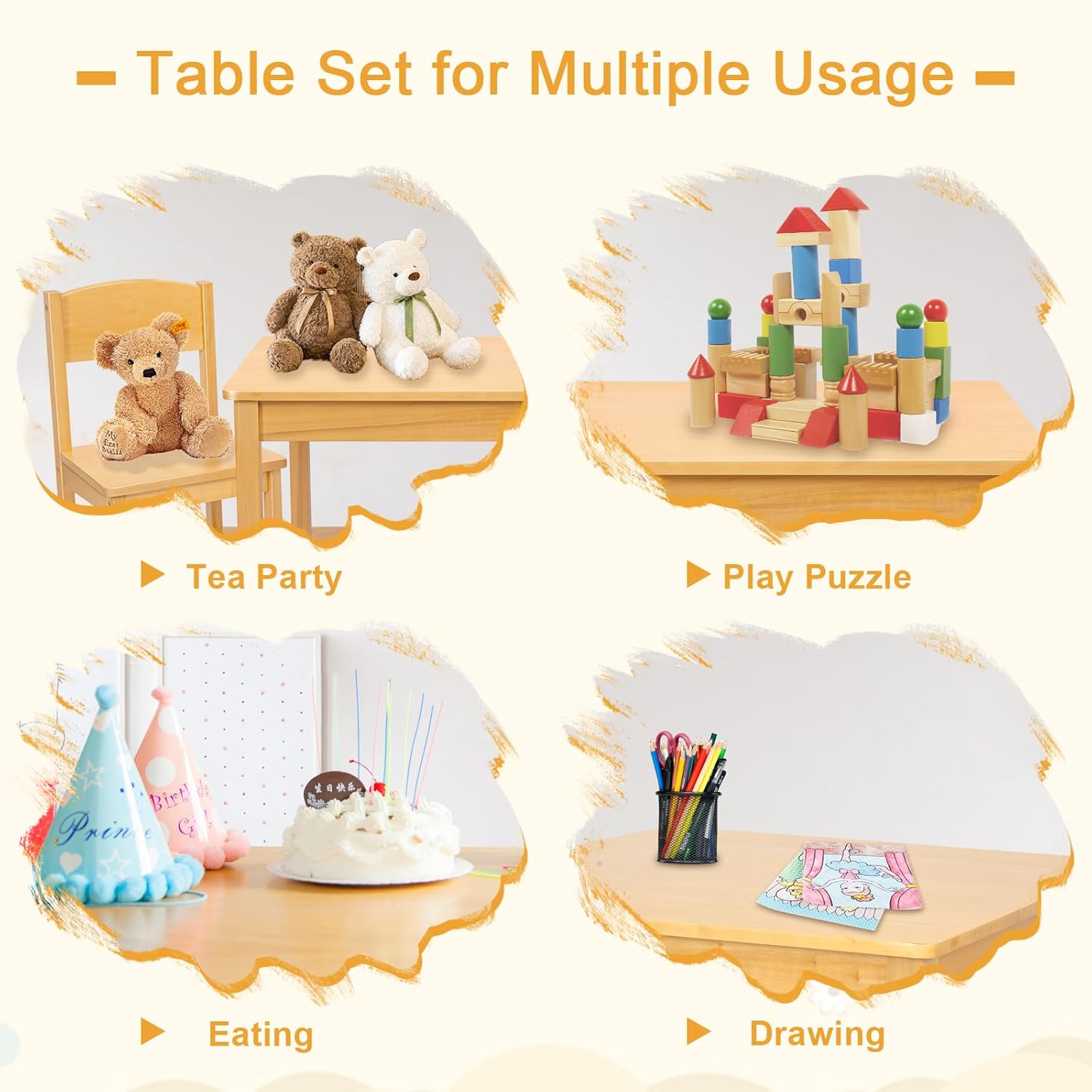 Kids Art Table and Chair Set, Birch Wooden Activity Craft Table, Kids Drawing Table, Toddler Desk with Storage and 1 Chair