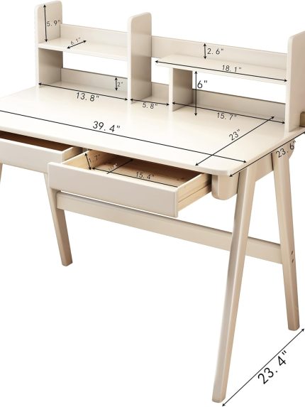 Kids Desk Kids Table Rubber Wood Children’s Study Desk with Bookshelf and Two Drawers Desk for 3 Years Old and Above Student’s Study Computer Workstation & Writing Table for Home Use(White