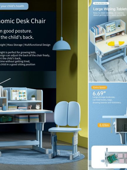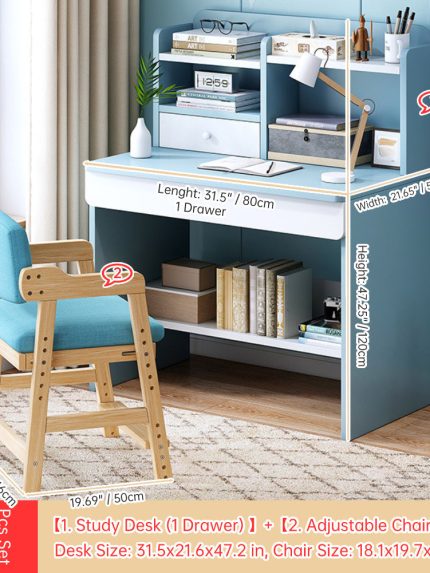 Kids Desk and Chair Set Height Adjustable, Children School Writing Study Table for Kids Computer Office Desk with Drawers