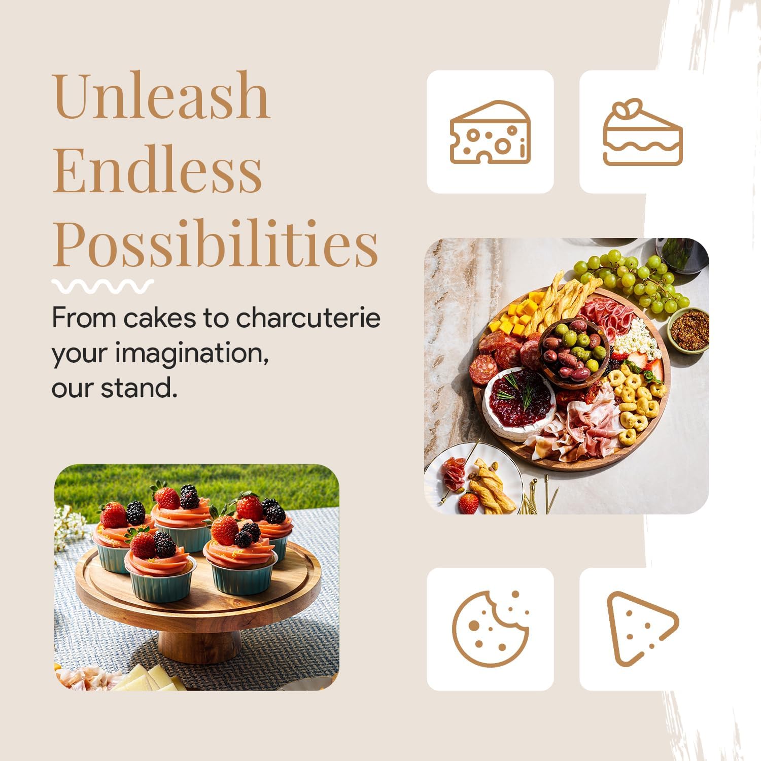 Acacia Wood Cake Stand with Lid – 12in Round Cake Holder, 2-in-1 Dessert Table Display Set & Charcuterie Board for Cheese, Chips & Dips, Nachos, Fruit Platter, Large Acrylic Cake Dome Cover