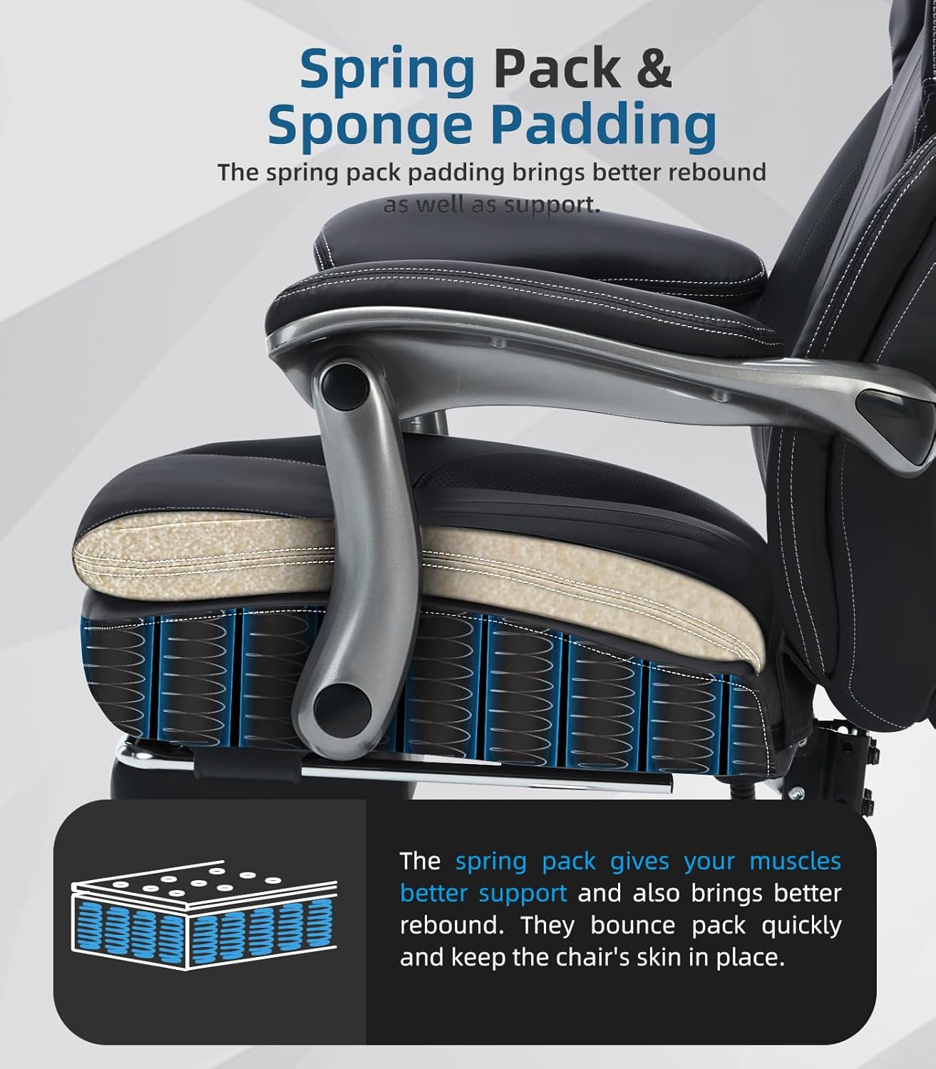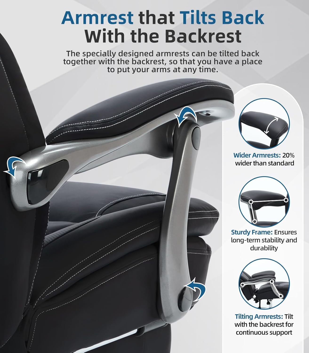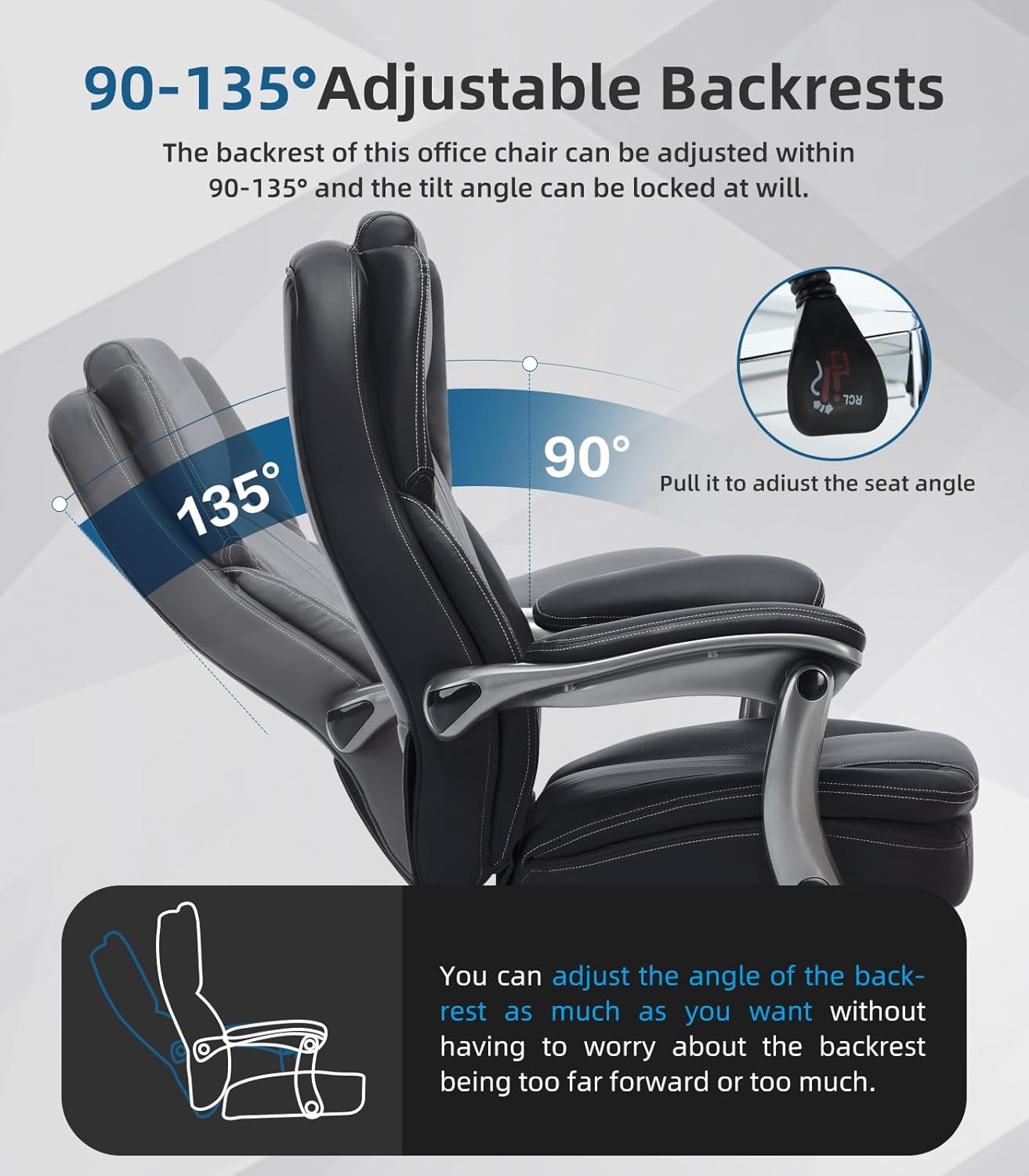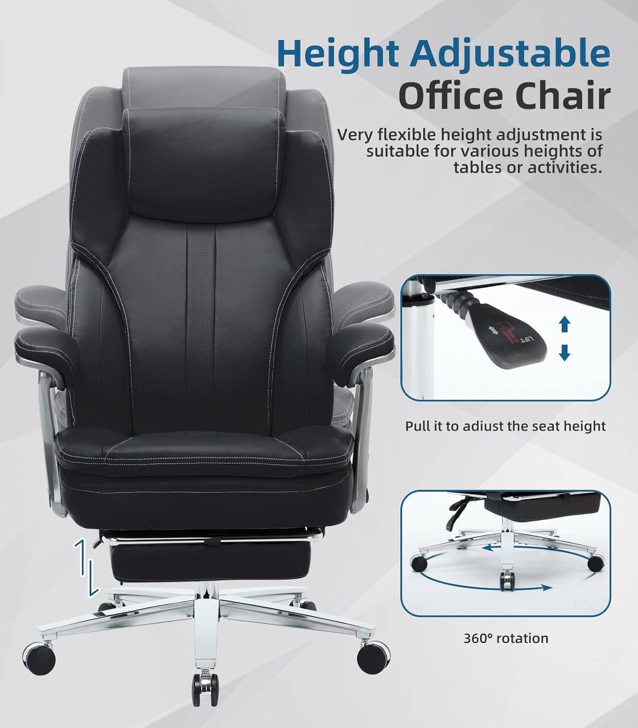 Big and Tall Office Chair with Footrest, Ergonomic High Back Executive Chair with Extra Wide Area Armrest, 500LBS PU Leather Managerial Home Desk Chair with 90-135°Reclining