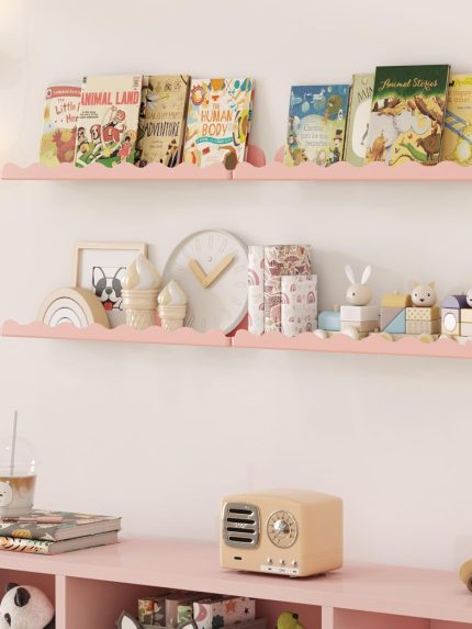 Lifewit Kids Bookshelf 2 Pack, 15″ Acrylic Floating Shelves for Wall Mounted, Pink Clouds Nursery Book Toy Hanging Racks for Baby/Toddler/Children in Bedroom, Living Room Decor