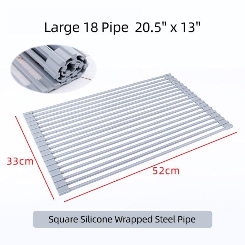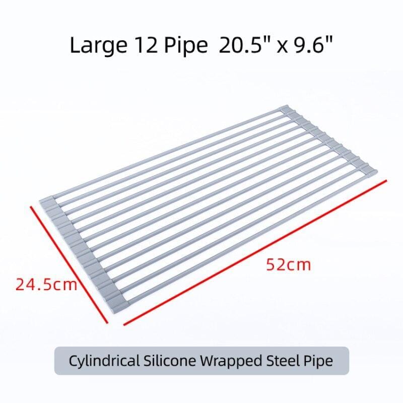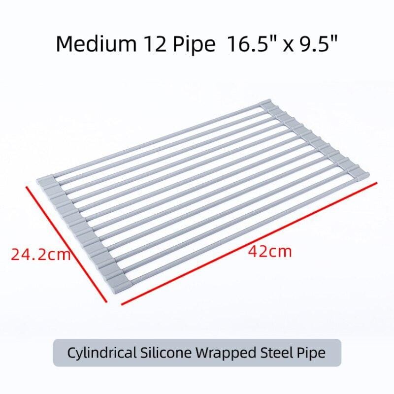 Dish Drying Rack Over Sink Multipurpose Portable Foldable Silicone Wrap Steel Dish Drying Rack Roll Up Drainer Kitchen Gadgets