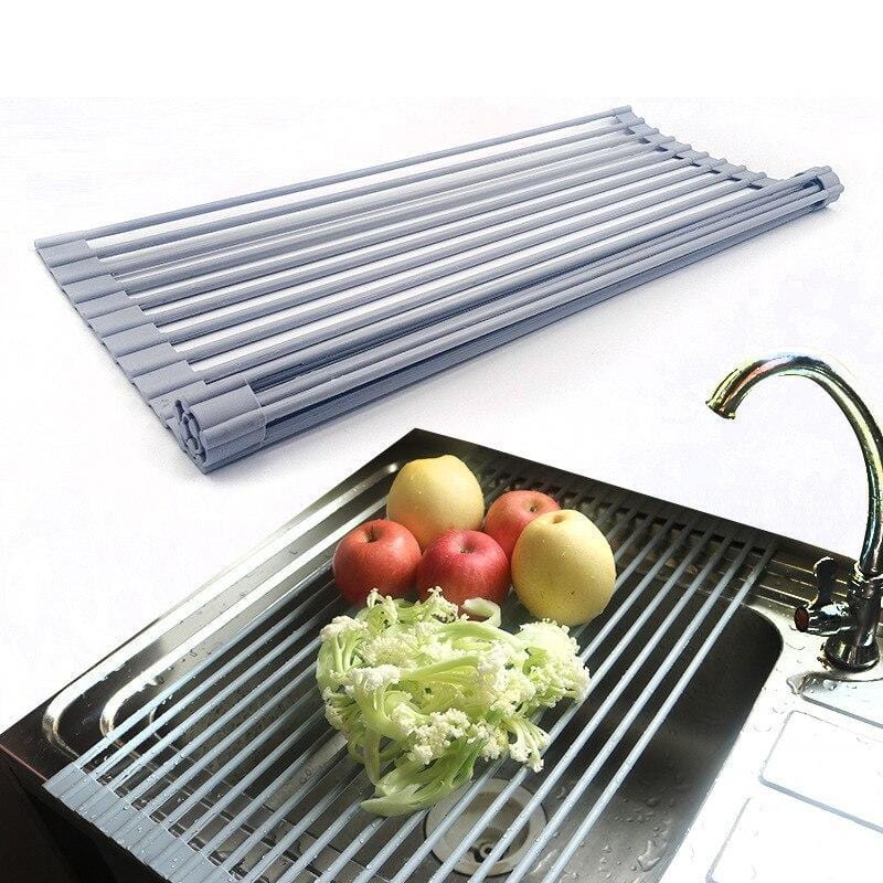 Multi-function Dish Drainers for Kitchen Counter: This dish drainer rack is well made and rolls up and goes in a drawer quickly when not in use. Unrolls above an open sink for air-drying washed dishes,counter top space,as a trivet or sink caddy.Veggies and fruit drying rack drainers,great tool for kitchen sink accessories.