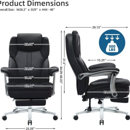 Big and Tall Office Chair with Footrest, Ergonomic High Back Executive Chair with Extra Wide Area Armrest, 500LBS PU Leather Managerial Home Desk Chair with 90-135°Reclining