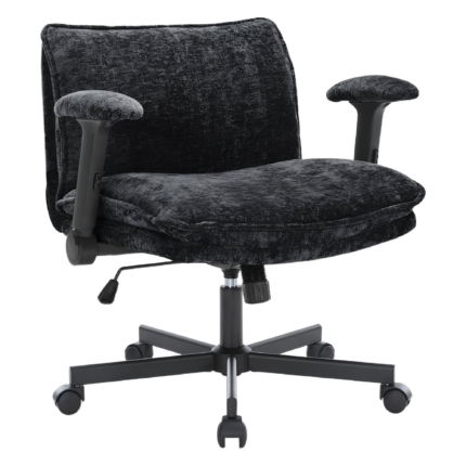 Pink-FanciSpot Cross Legged Office Chair with Wheels and Adjustable Flip-Arms, Criss Cross Desk Chair with Thick Cushion, Wide Seat Office Chair, Comfy Swivel Chair for Home Office, Apartment, Bedroom, Black