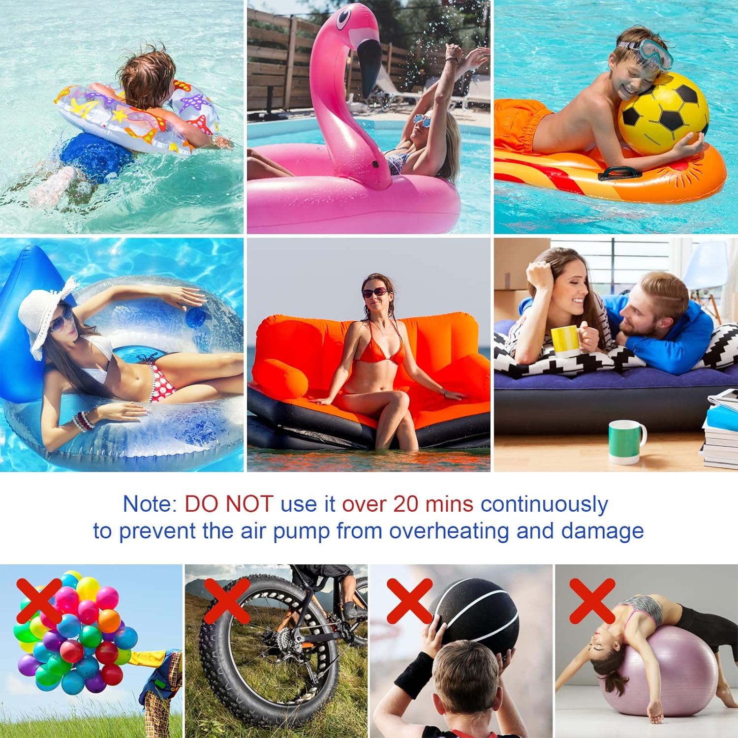 - Ideal for air mattresses, pool floats, inflatable boats, and water beds.