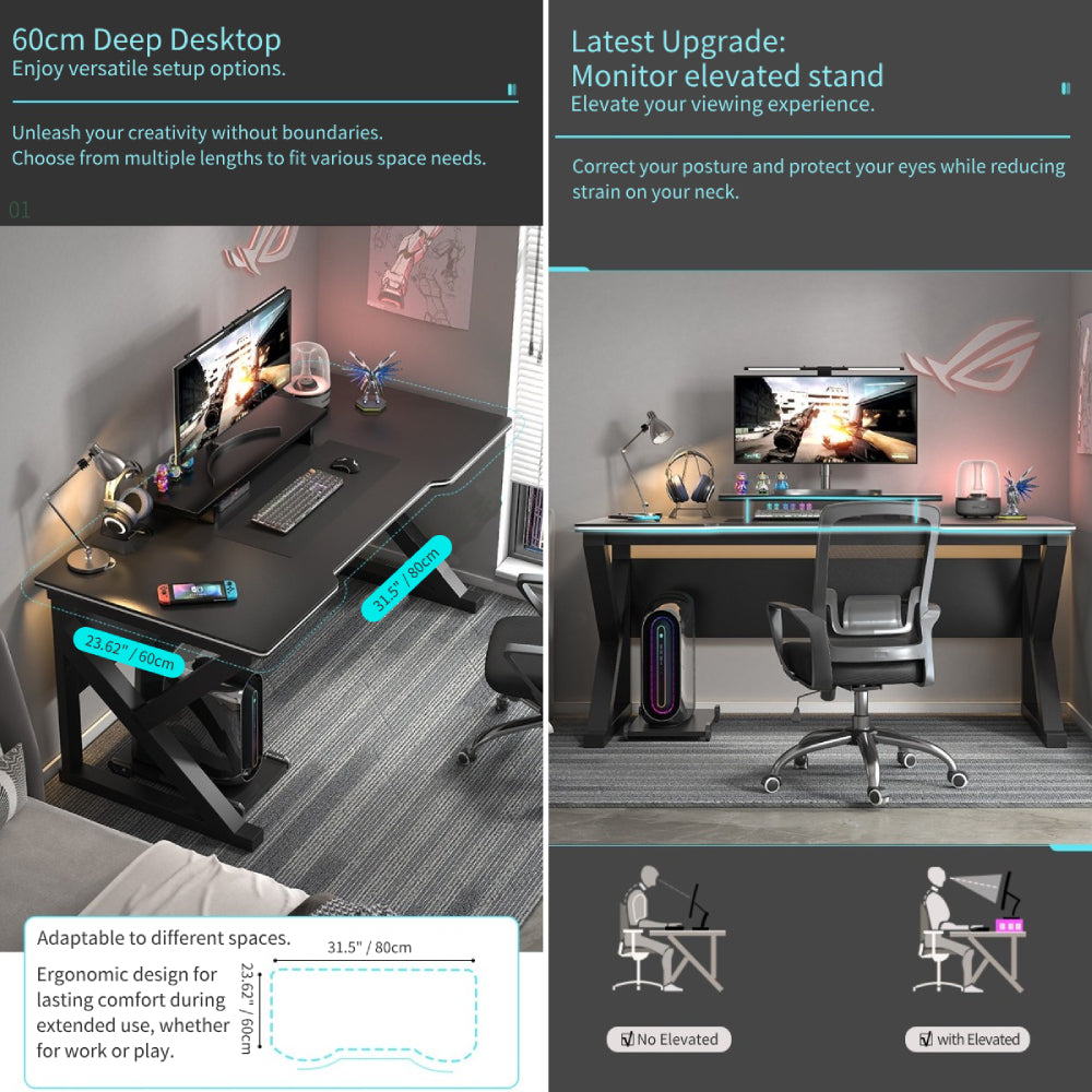 Monitor Stand: The additional monitor stand is thoughtfully designed. Maintain the perfect posture, protect your eyes, and reduce neck strain during extended gaming or work sessions.