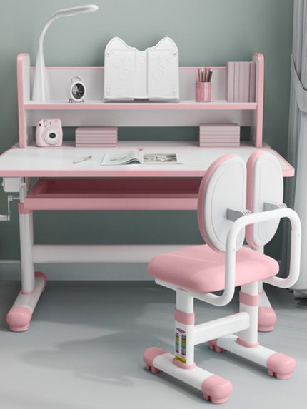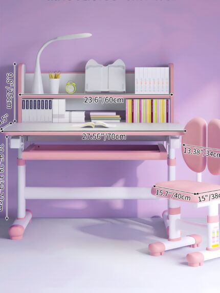 Artist hand Kids Study Desk and Chair Set Height Adjustable Children School Girl Table Large Writing Board Desk with LED Lamp Pull Out Drawer Pencil Case Bookstand