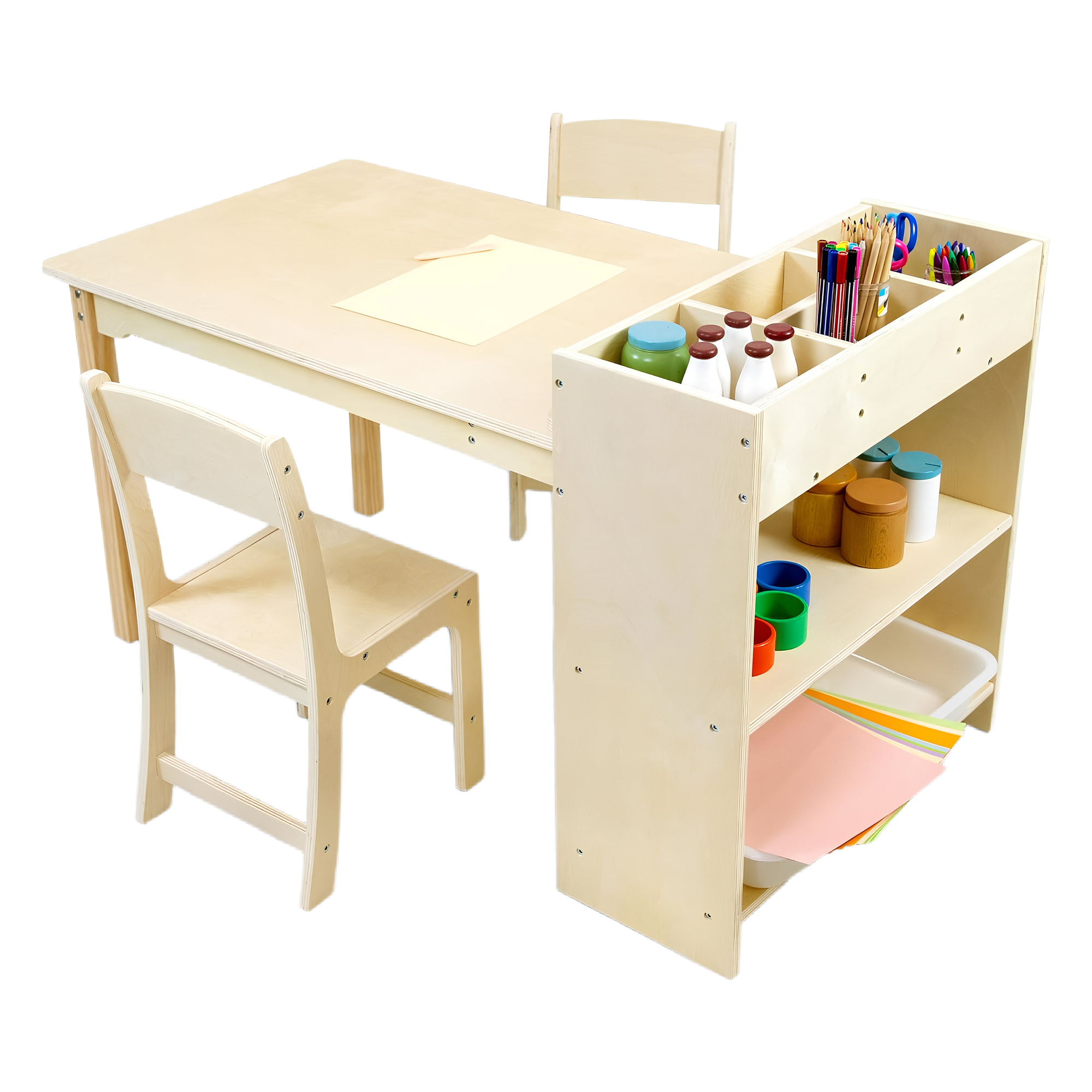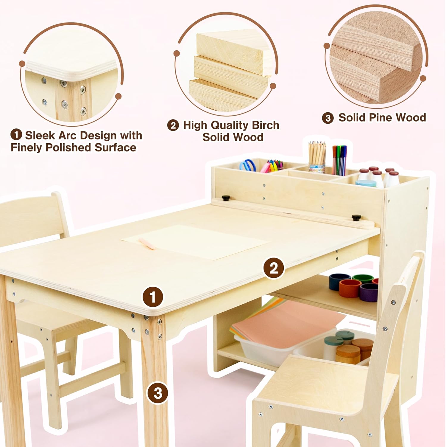 Kids Art Table and Chair Set, Birch Wooden Activity Craft Table, Kids Drawing Table, Toddler Desk with Storage and 1 Chair