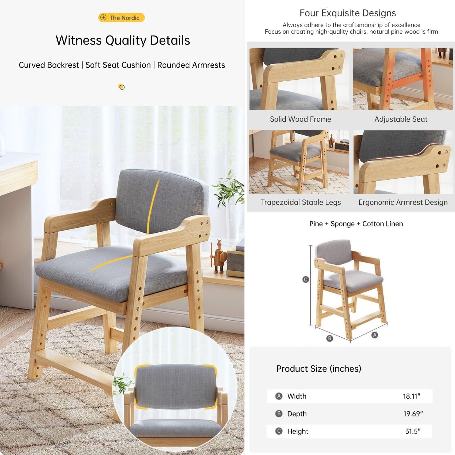- Breathable Cotton & Linen: Soft, skin-friendly fabric for comfortable seating.