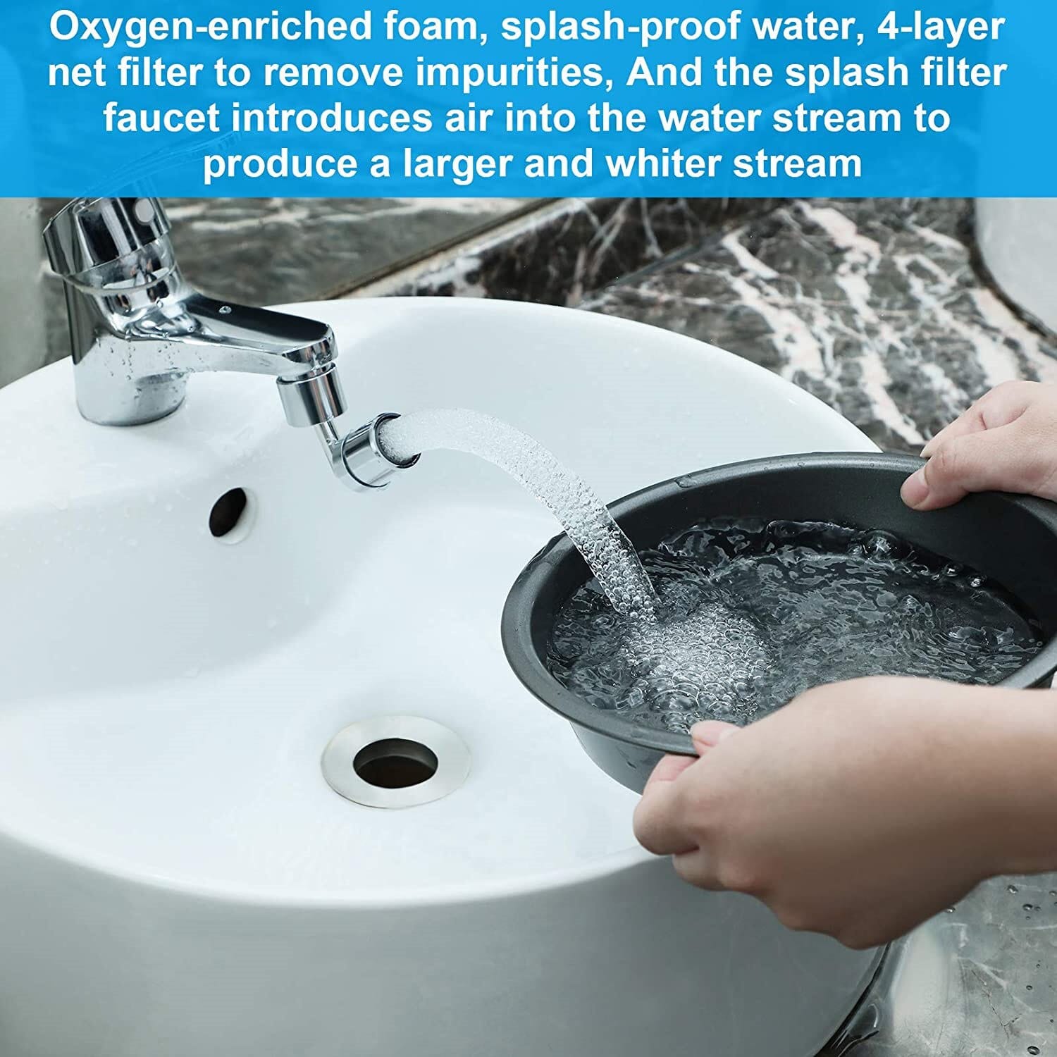 [720 ° SWIVEL SINK FAUCET AERATOR] The splash-proof faucet outlet can be rotated 720 °, which is convenient for our daily life like washing face and gargling!