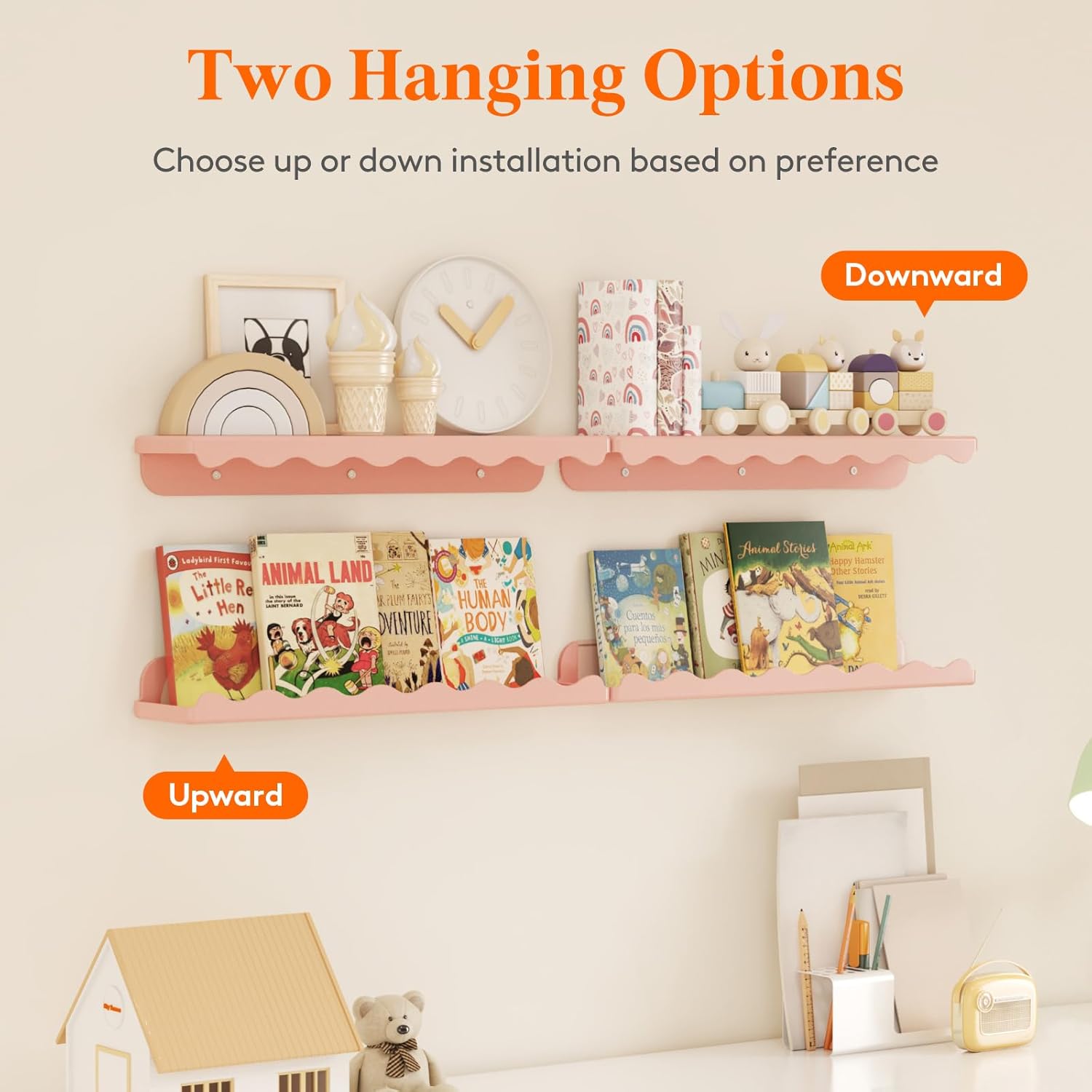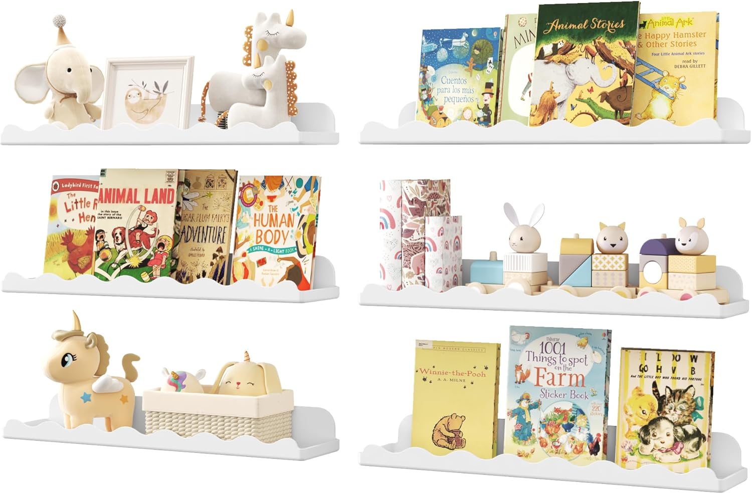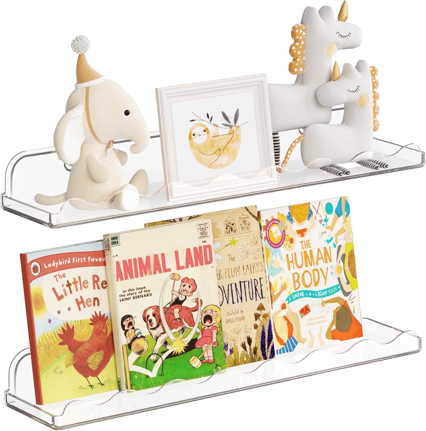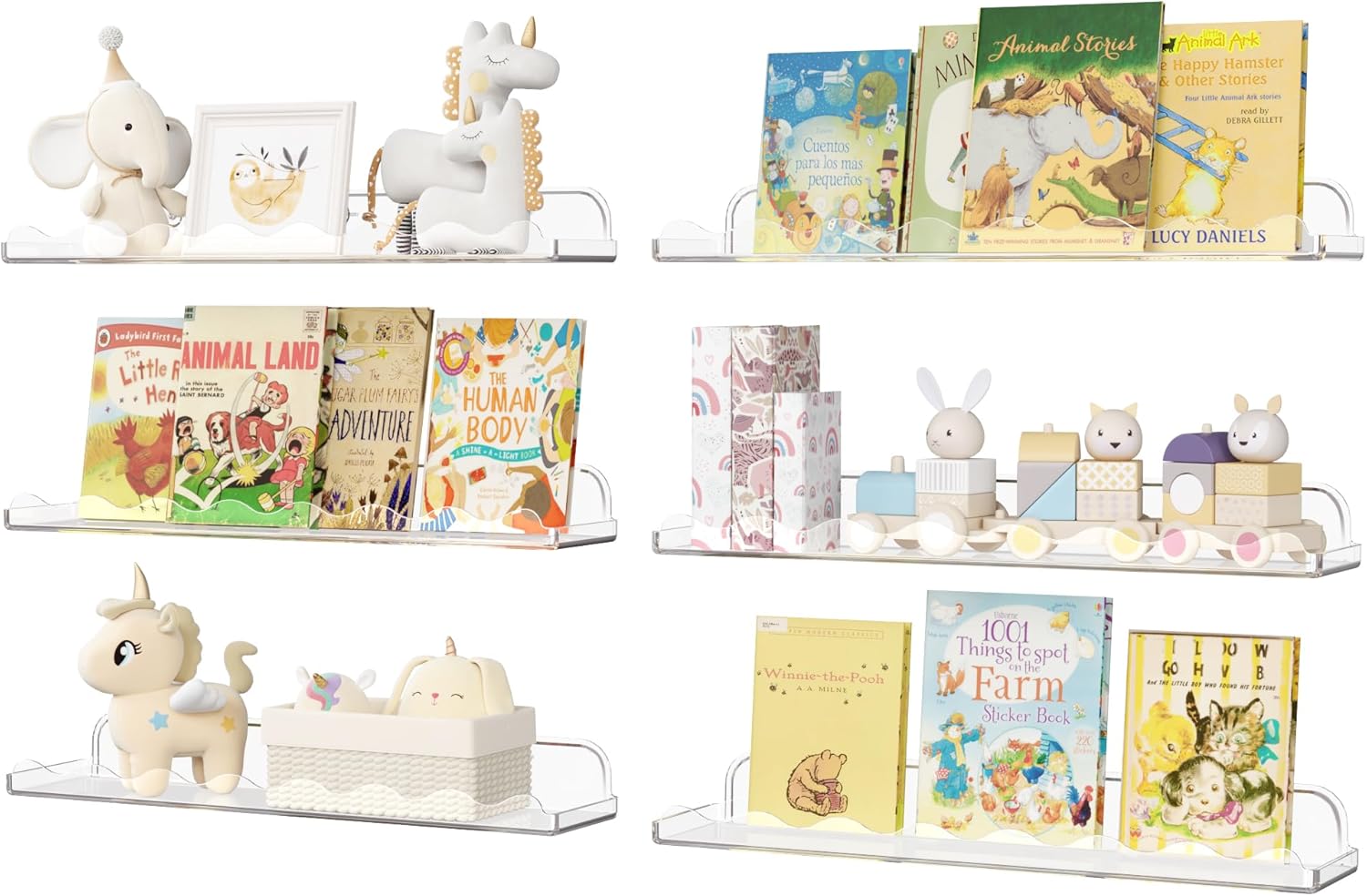 Lifewit Kids Bookshelf 2 Pack, 15″ Acrylic Floating Shelves for Wall Mounted, Pink Clouds Nursery Book Toy Hanging Racks for Baby/Toddler/Children in Bedroom, Living Room Decor