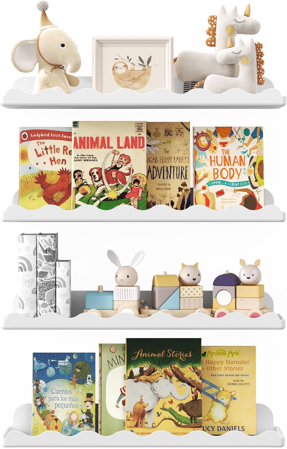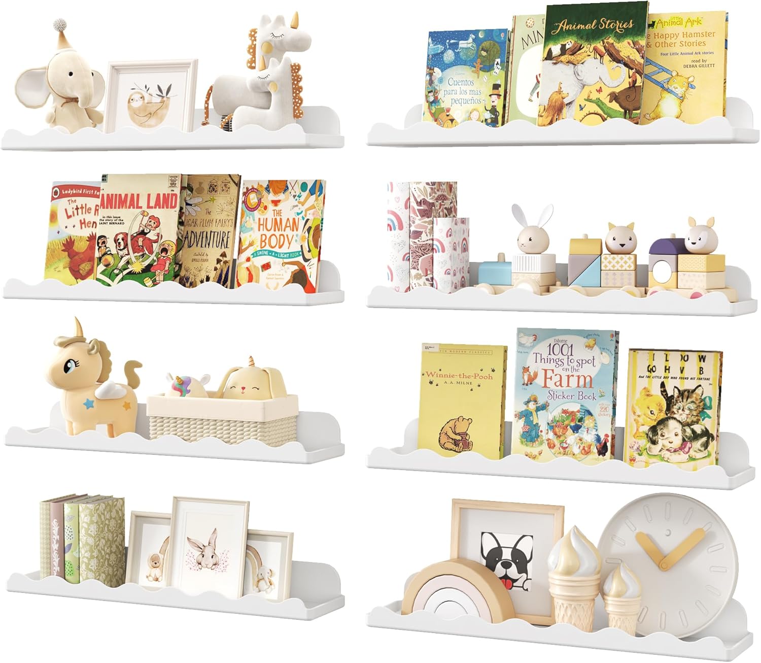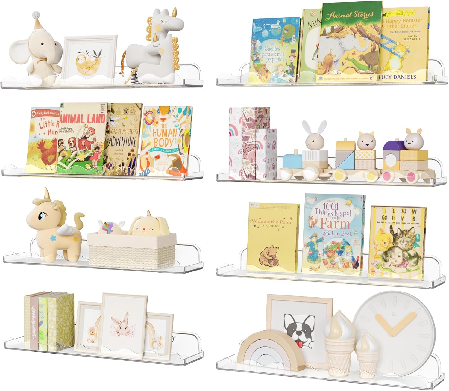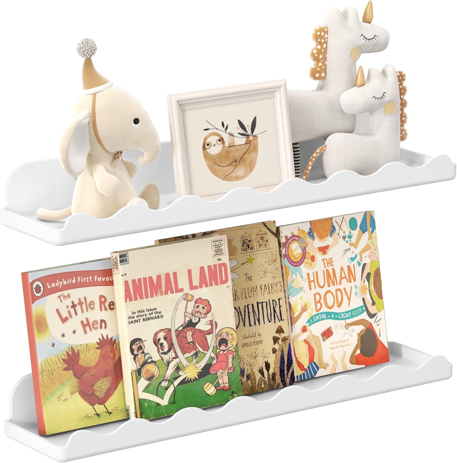 Lifewit Kids Bookshelf 2 Pack, 15″ Acrylic Floating Shelves for Wall Mounted, Pink Clouds Nursery Book Toy Hanging Racks for Baby/Toddler/Children in Bedroom, Living Room Decor