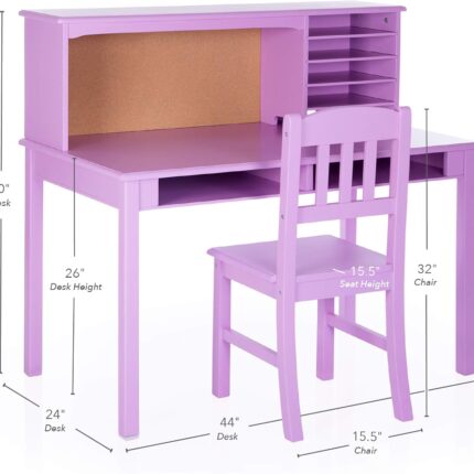 Guidecraft Children’s Media Desk and Chair Set – Lavender: Student’s Study Computer Workstation with Hutch and Shelves, Wooden Kids Bedroom Furniture