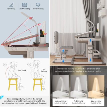 The height is adjustable, which is more suitable for the growing height of the child, adjust the appropriate height of the seat cushion, keep the back upright without bending, reduce back fatigue, correct the child’s sitting posture, and ensure the good growth and development of the child’s body.