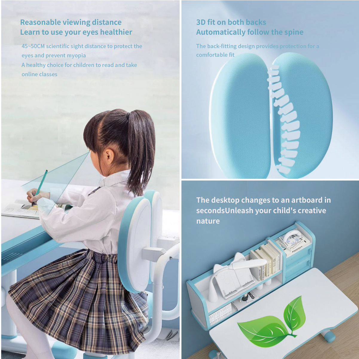 – Adjustable Height & Correct Sitting Posture: Accompany your child’s growth, adjust the optimal height of the desk and chair, suitable for 2-16 years old. Promotes proper posture and spine protection for long, comfortable study sessions.