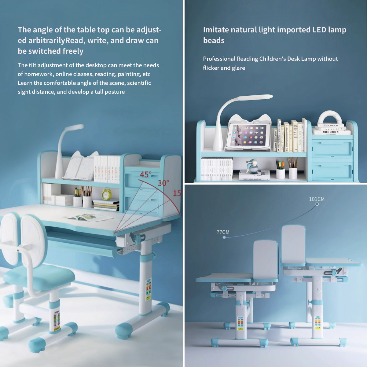 – Protect Eyesight & 3 Levels LED Lamp: 3800K scientific color temperature, three levels of warm light, natural light, and cold light adjustment, along with a diffuse matte desktop, take care of your child’s eyes.