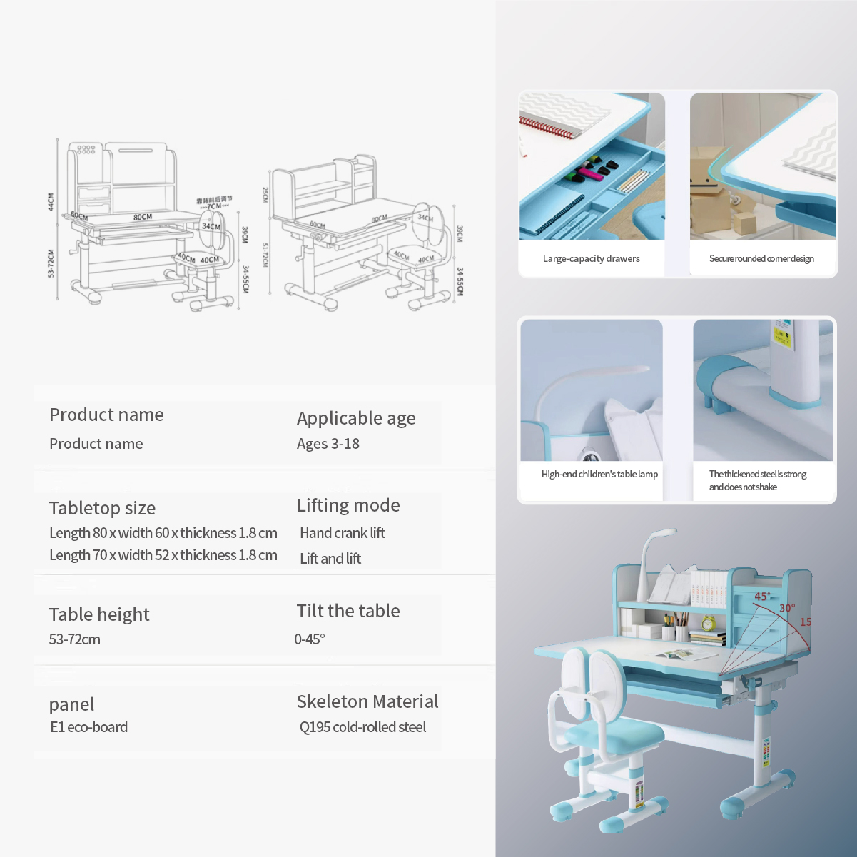 Our Adjustable Kids Desk and Chair Set offers a dynamic learning environment with these exceptional features: