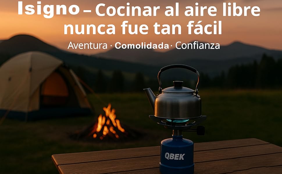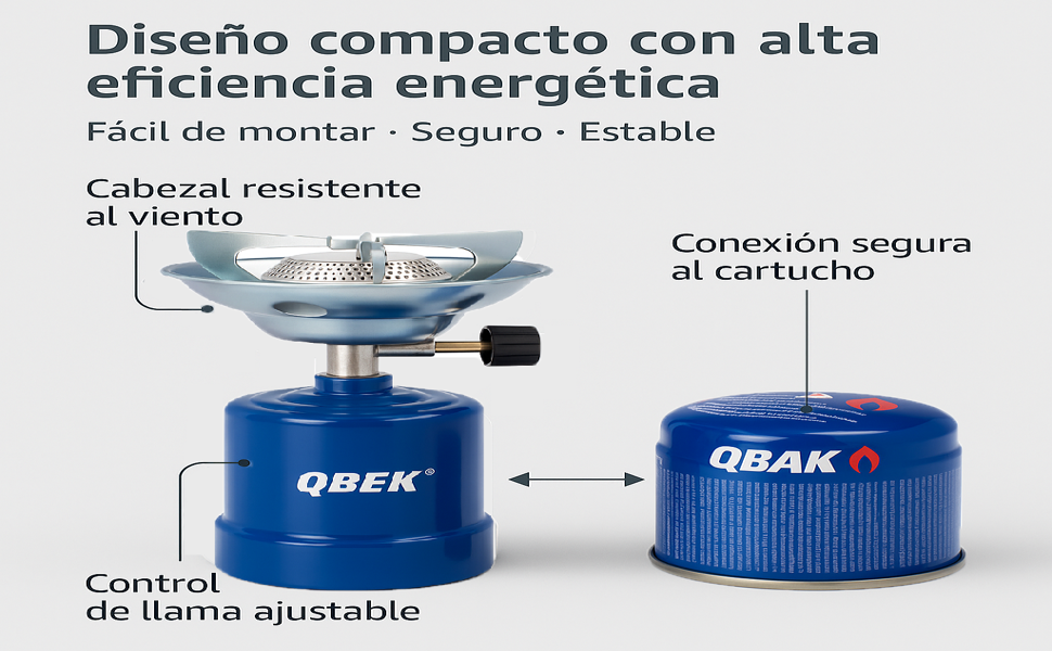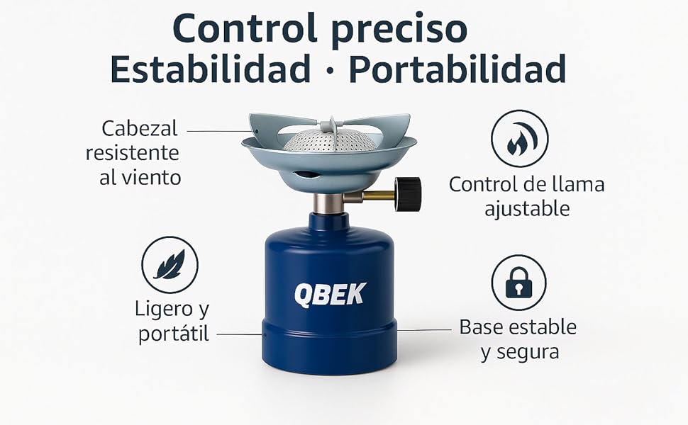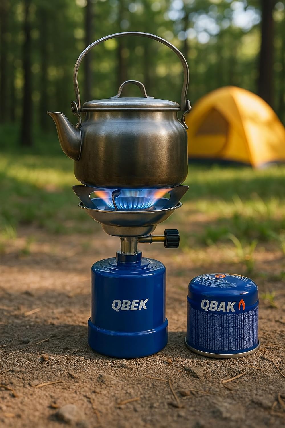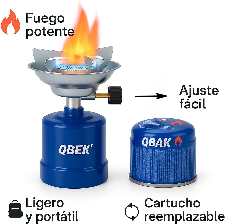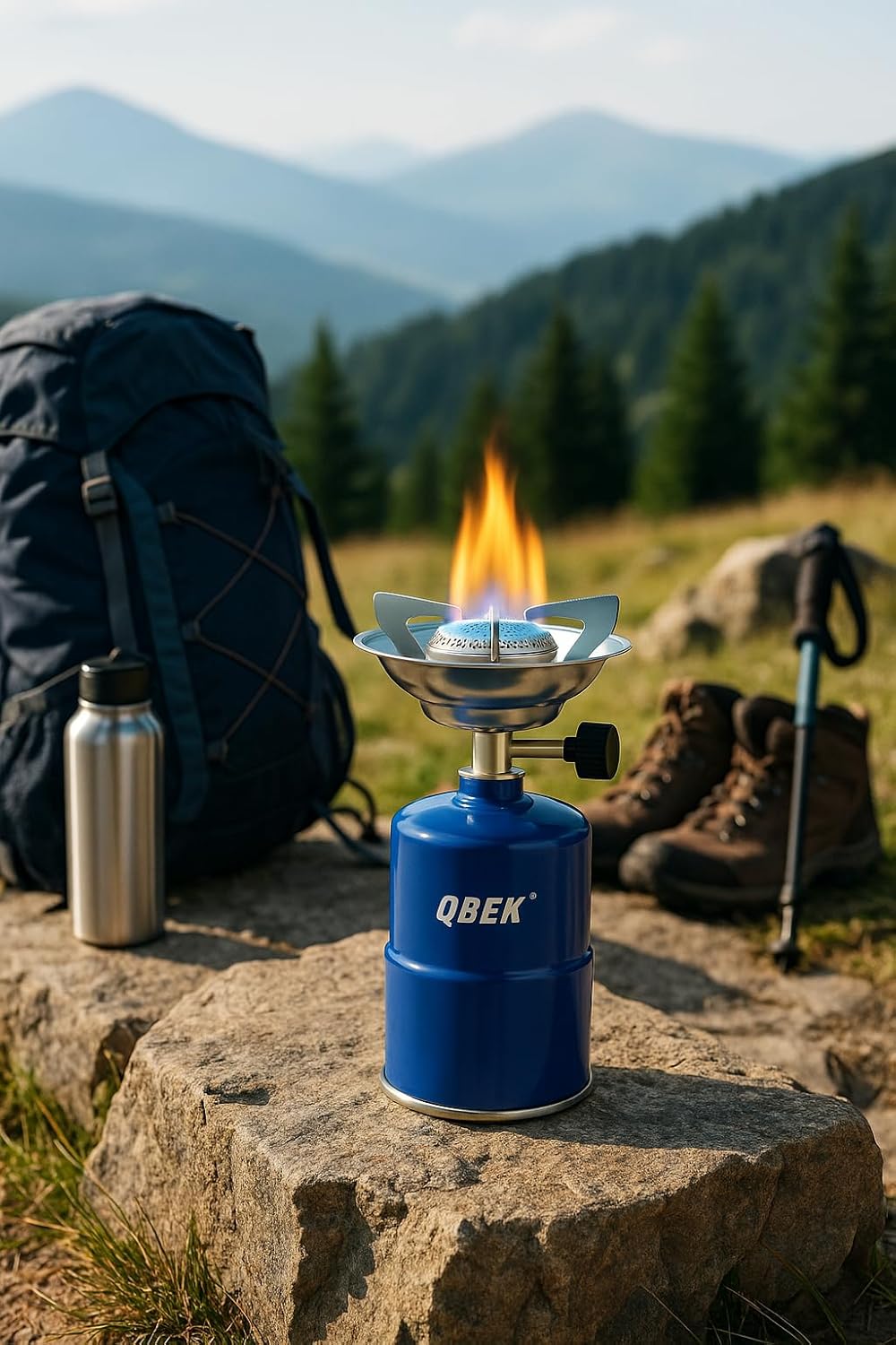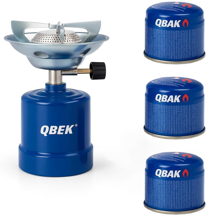 Powerful and compact camping stove with stable wind-resistant flame, precise heat control, 3 QBAK gas canisters included, lightweight durable design perfect for outdoor cooking and travel.