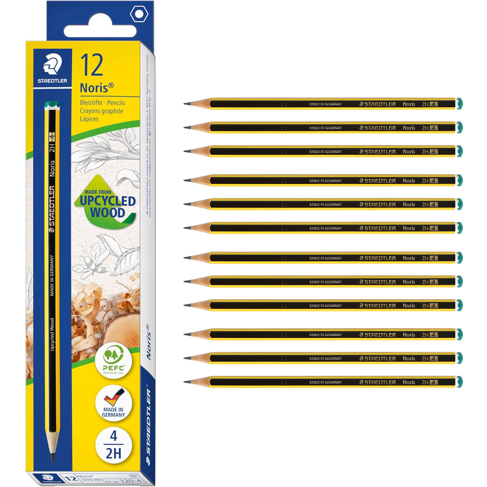 Lápices STAEDTLER Noris de grafito con graduación 2H–4, ideales para escritura precisa, dibujo y bocetos. Fabricados con madera certificada y mina resistente a la rotura. Set de 12 unidades para escuela y oficina.